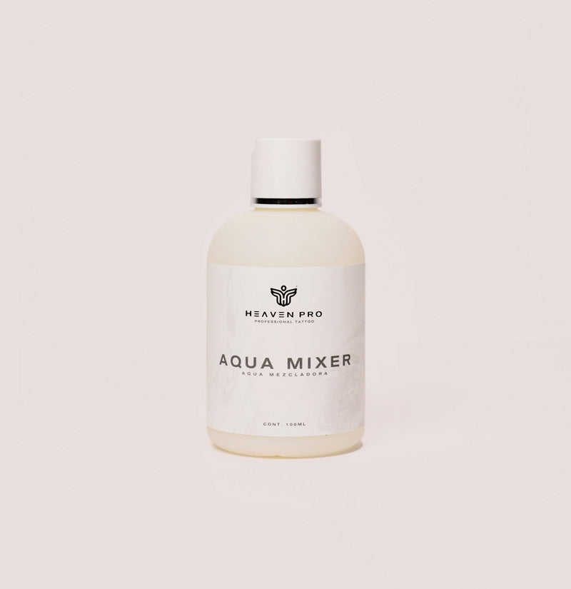 AQUA MIXER es un diluyente (solución hidroalcohólica) para tintas, diseñado para optimizar la aplicación del tatuaje, con una mezcla equilibrada de ingredientes naturales. Diseñado para profesionales del tatuaje, ofrece una dilución equilibrada que optimiza la aplicación de la tinta. Su fórmula incluye extracto de hamamelis, alcohol, agua, glicerina, extracto de aloe vera, extracto de pepino, extracto de caléndula y extracto de té verde.