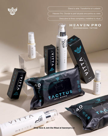 Inspired by passion, authenticity, and body art, Heaven Pro was founded in 2022 by a group of tattoo artists and skincare lovers who set out to create products made by tattoo artists, for tattoo artists and tattoo lovers. Our mission is to provide safe, effective formulas fully focused on the tattooing experience—from untouched skin, to freshly inked art, and perfect healing.