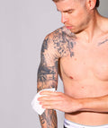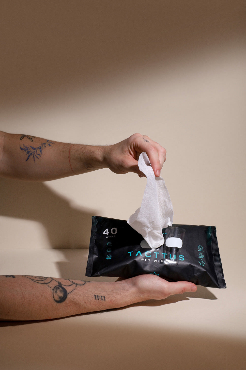 Wet wipes specially formulated to offer a delicate and revitalizing cleansing of skin. The unique combination of surfactants, witch hazel extract, aloe vera, oil of jojoba and other moisturizers guarantees a refreshing experience, respecting the sensitivity and colors of the tattoos.